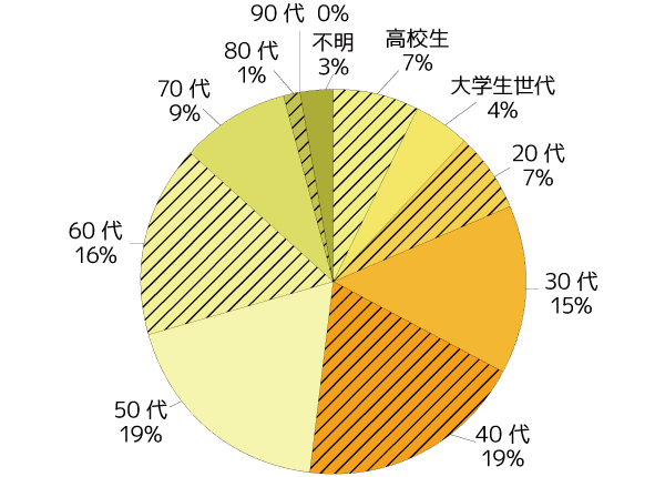 30~60代までの方で7割を占めますが、高校生~90代の方まで幅広い年齢の方にご通学いただいています。