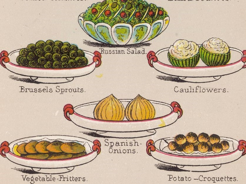 ※写真はビートン夫人の家政本からパーティ用の冷たいお肉料理とサラダ