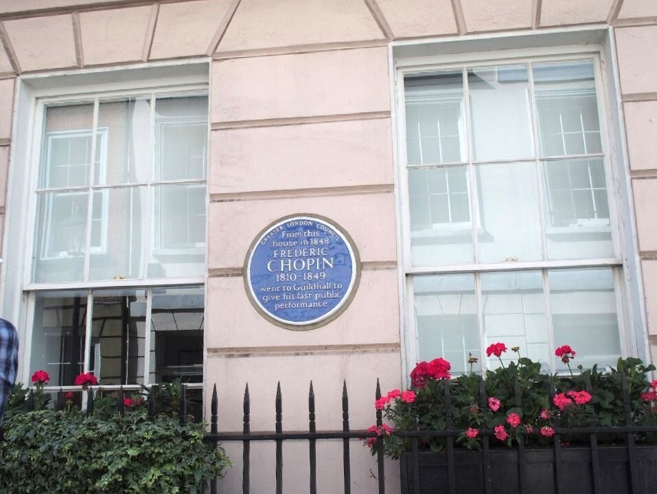 ショパンの最後の演奏会がイギリスだったとは… このブループラークを偶然見つけて調べたことで、ショパンがロンドンにいたことも知りました。