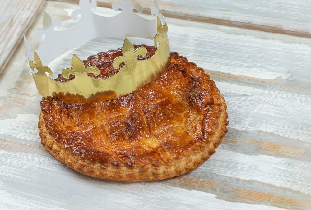 フランスで新年のお祝いに欠かせない伝統的なお菓子、それがガレット・デ・ロワ。王さまのケーキの意味です。紙の王冠を乗せた丸い形をしたケーキを作ります。パイ生地の中にアーモンドクリームを入れて焼き上げ、フェーブと呼ばれる陶器製の小さな人形を1つ入れます。切り分けた時このにフェーブが入っていた人は、その年の王さままたは女王さまになれます。