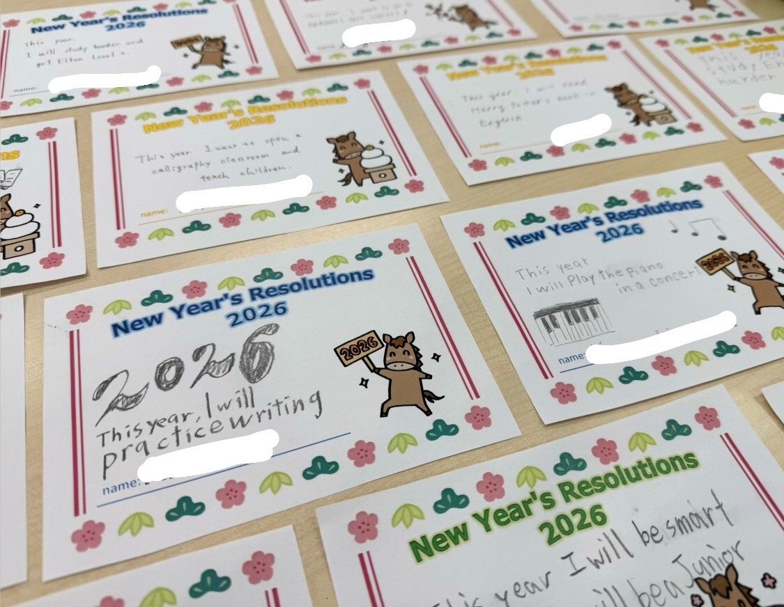 2026年が始まりました。 香椎校では、生徒の皆さまそれぞれが ”New Year’s Resolutions”(新年の目標)を英語で表明し、新しい一年を前向きにスタートしています。